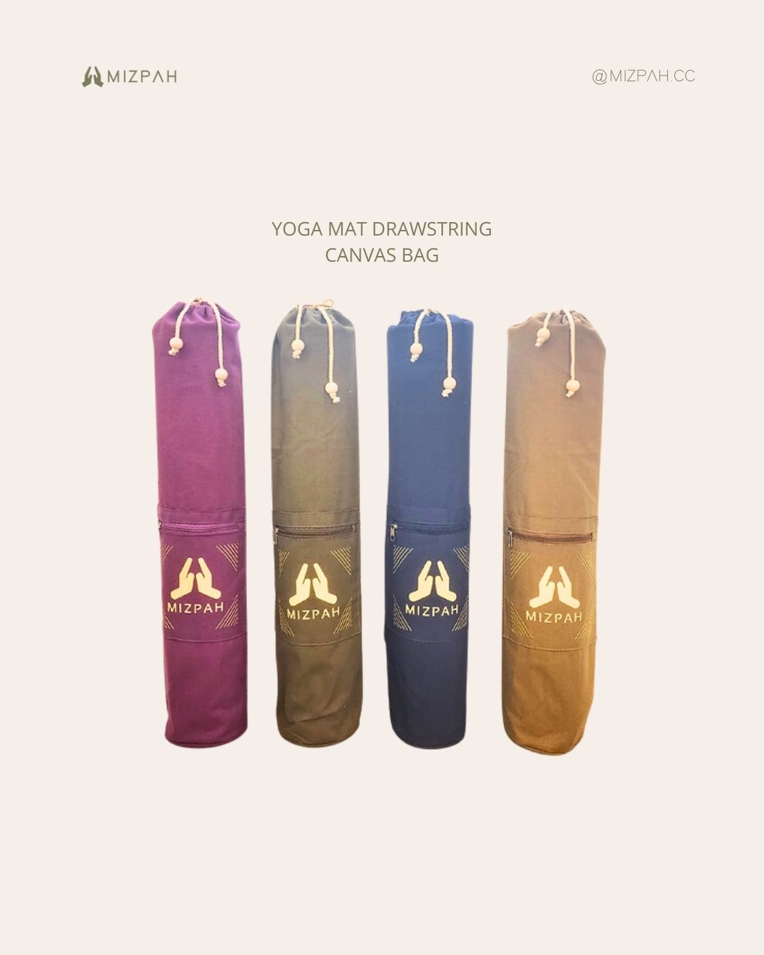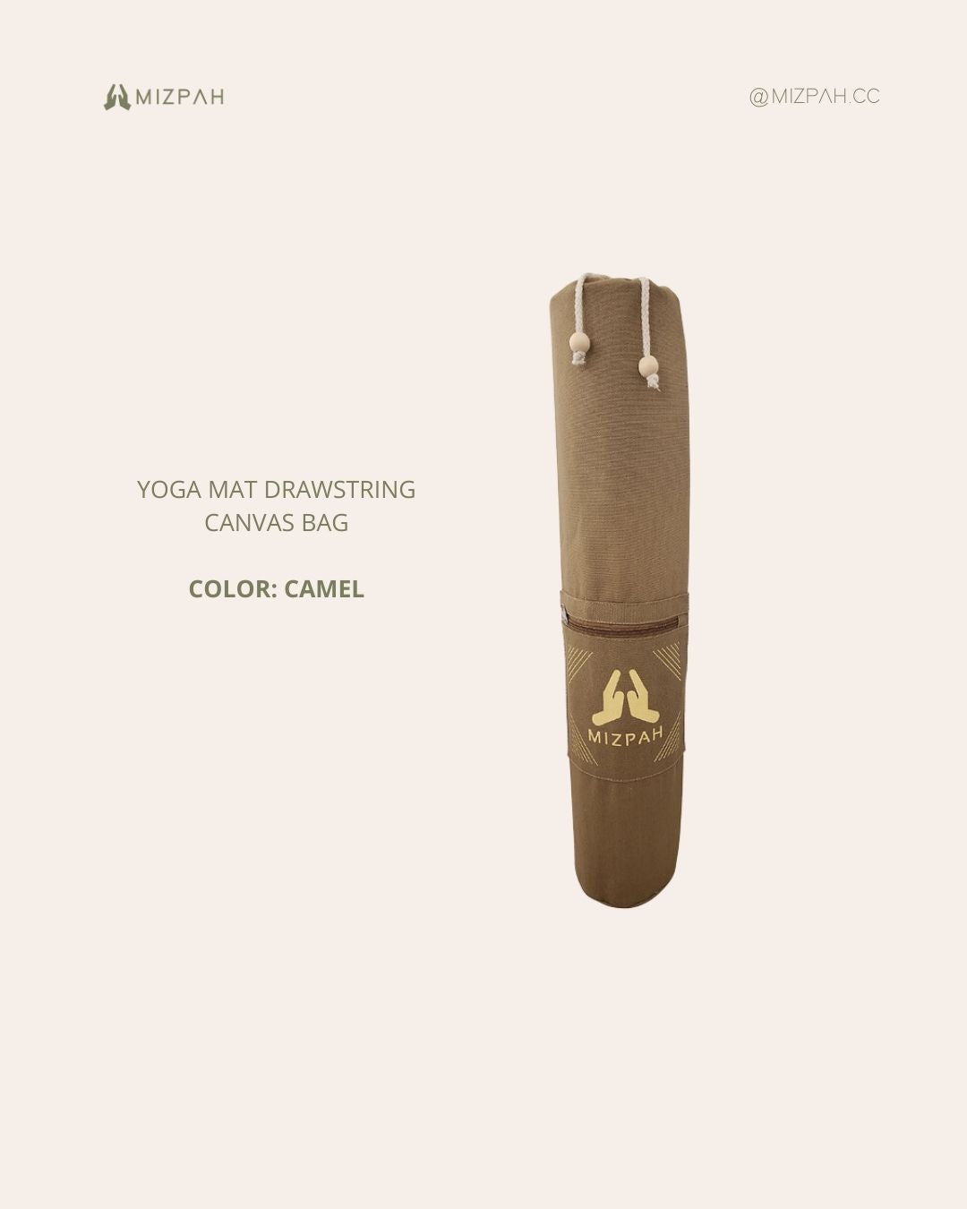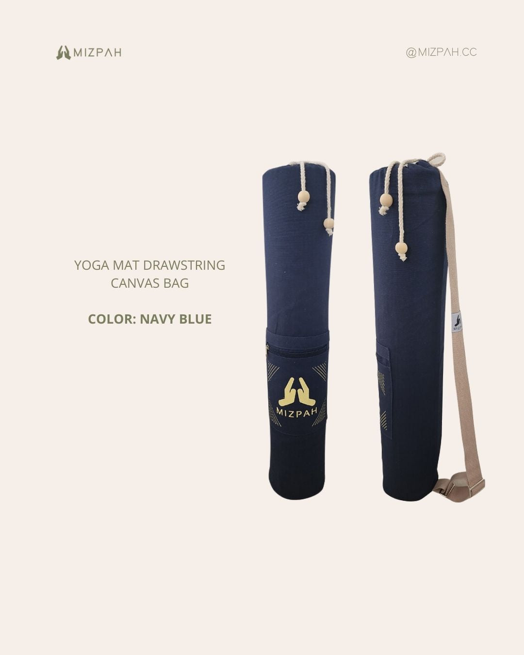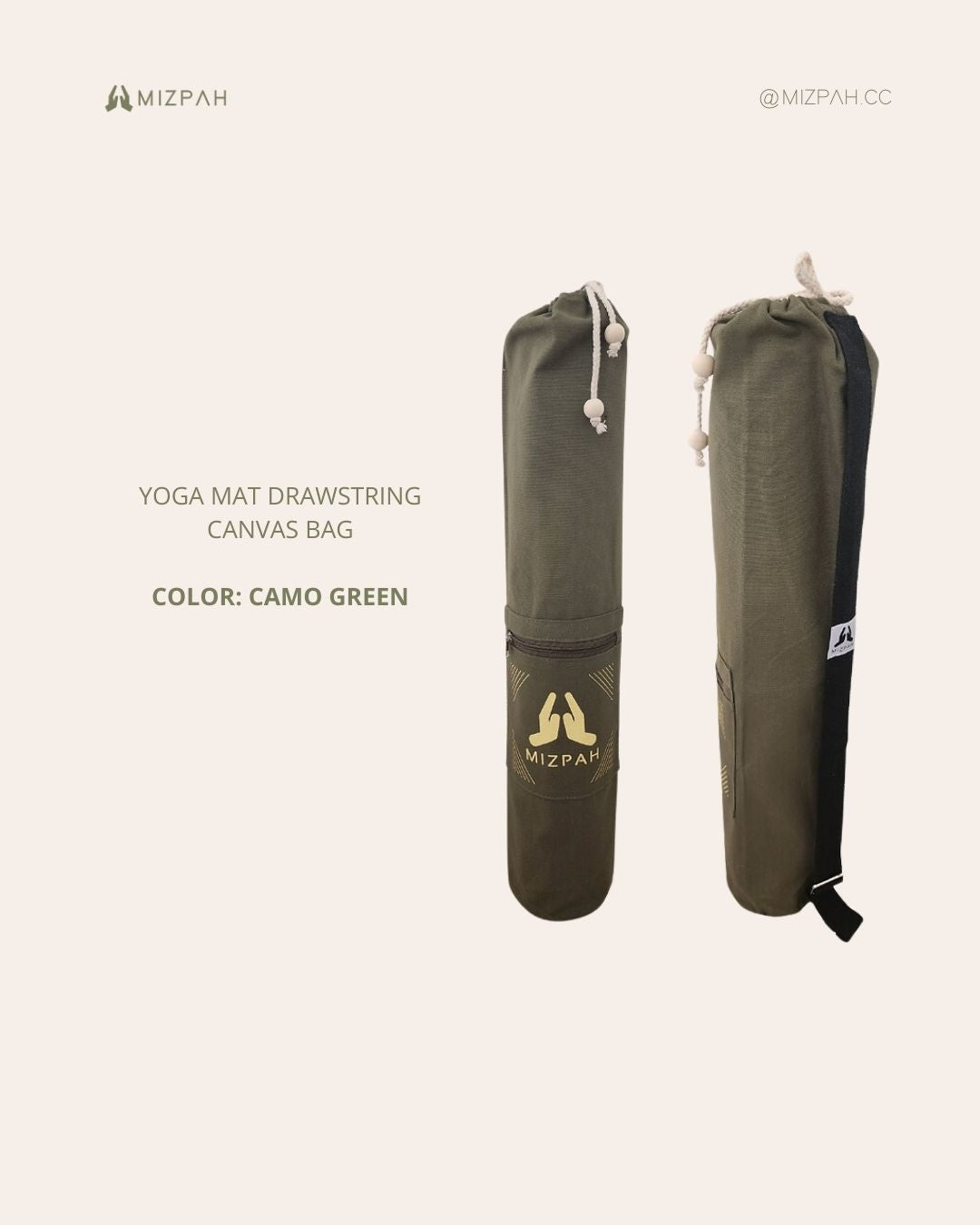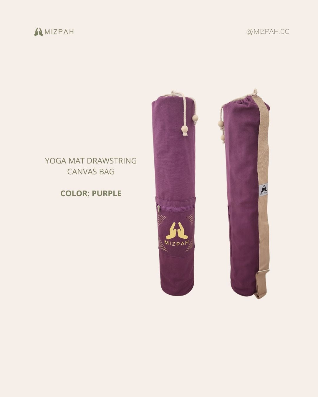 100% high quality canvas - Sleek and minimalist design- Drawstring closure with front zipper pocket ideal for your personal belongings such as yoga strap, yoga socks, small yoga accessories, cell phone, wallet, etc.